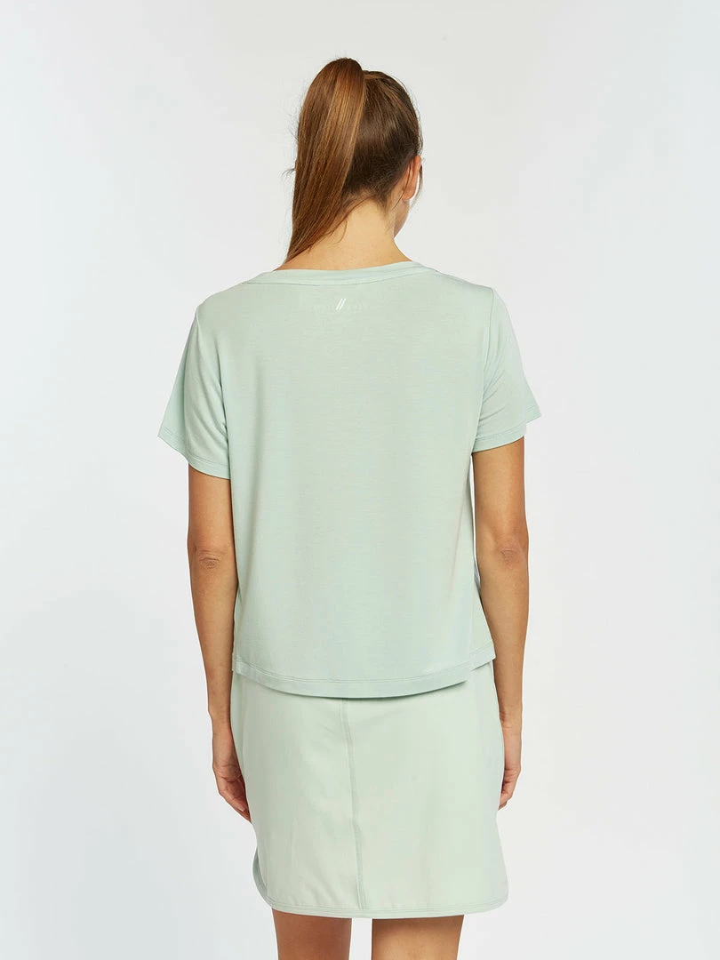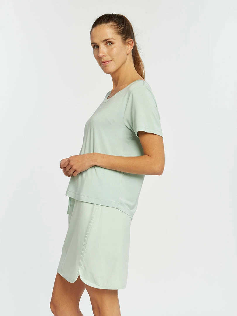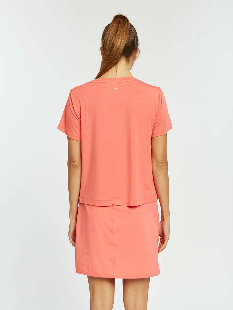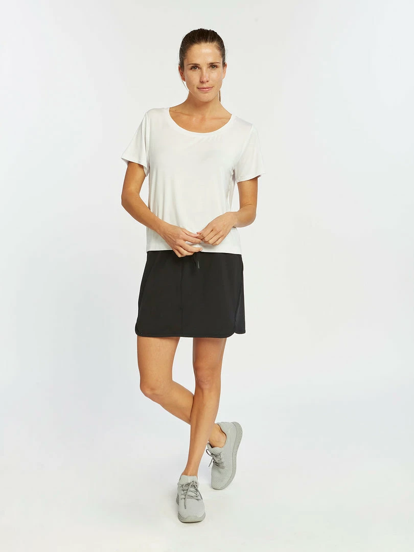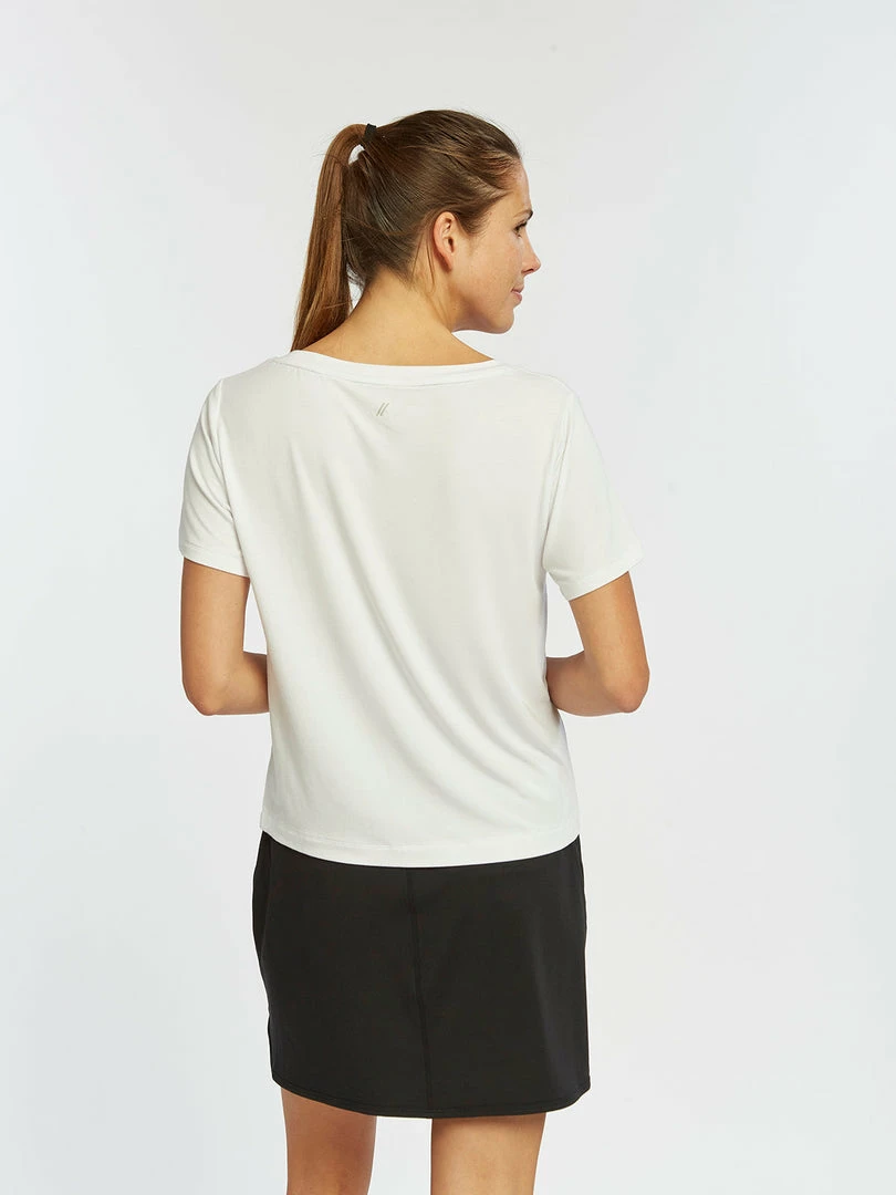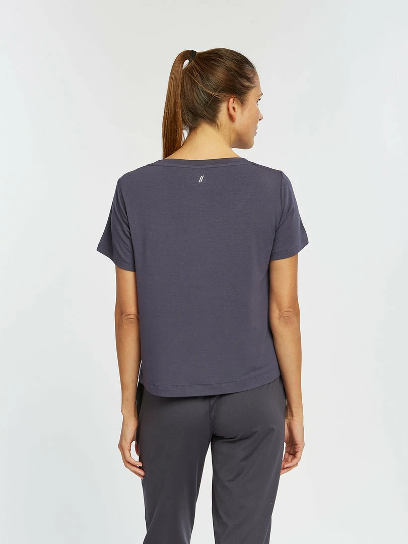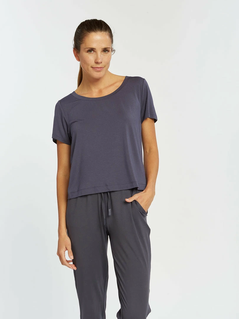 Irresistibly soft scoop neck tee with an effortless, oversized design. The perfect layer for lounging, leisuring or for studio-to-street wear.
