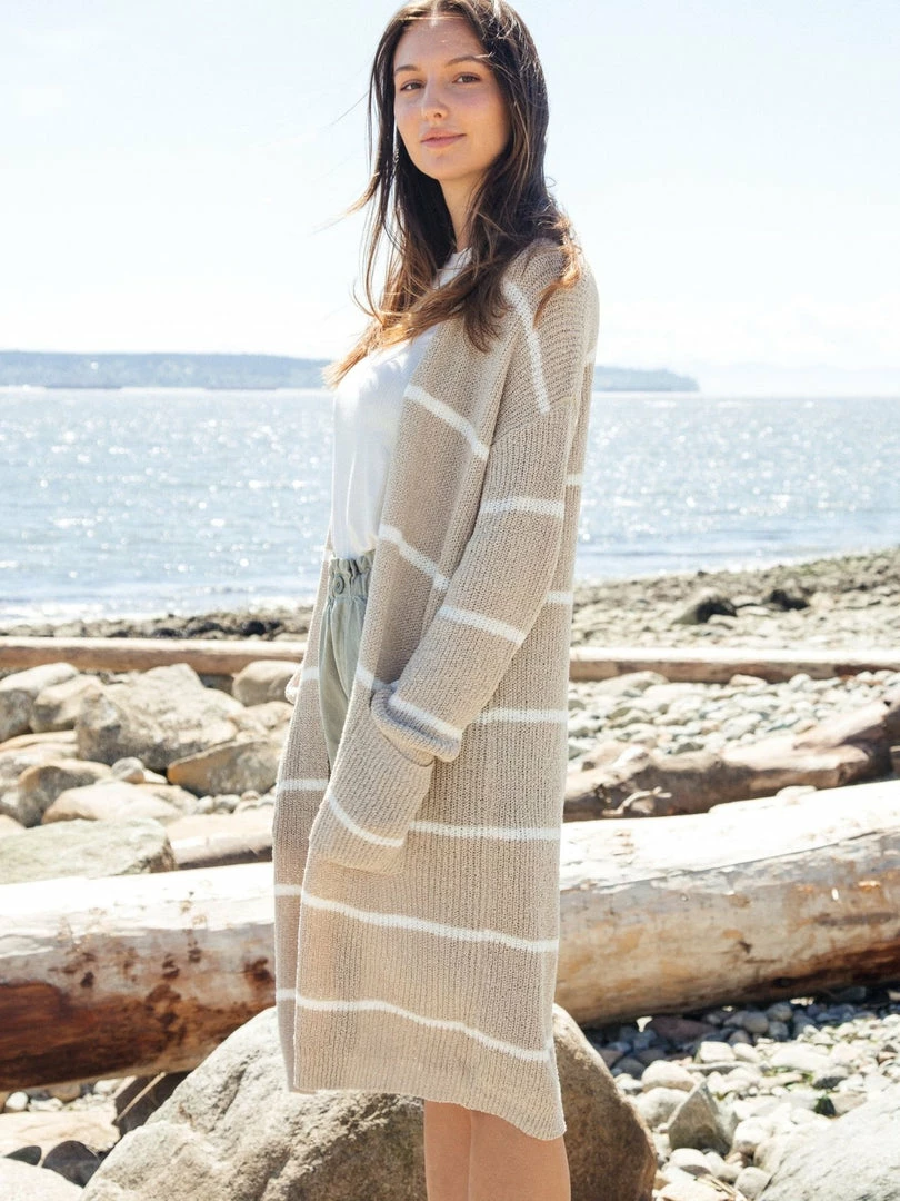 Look cute and stay comfy in this super soft long-lined cardigan! Perfect to throw on over you favorite outfit, or lounge around in it worn over sweats. Featuring two side pockets.