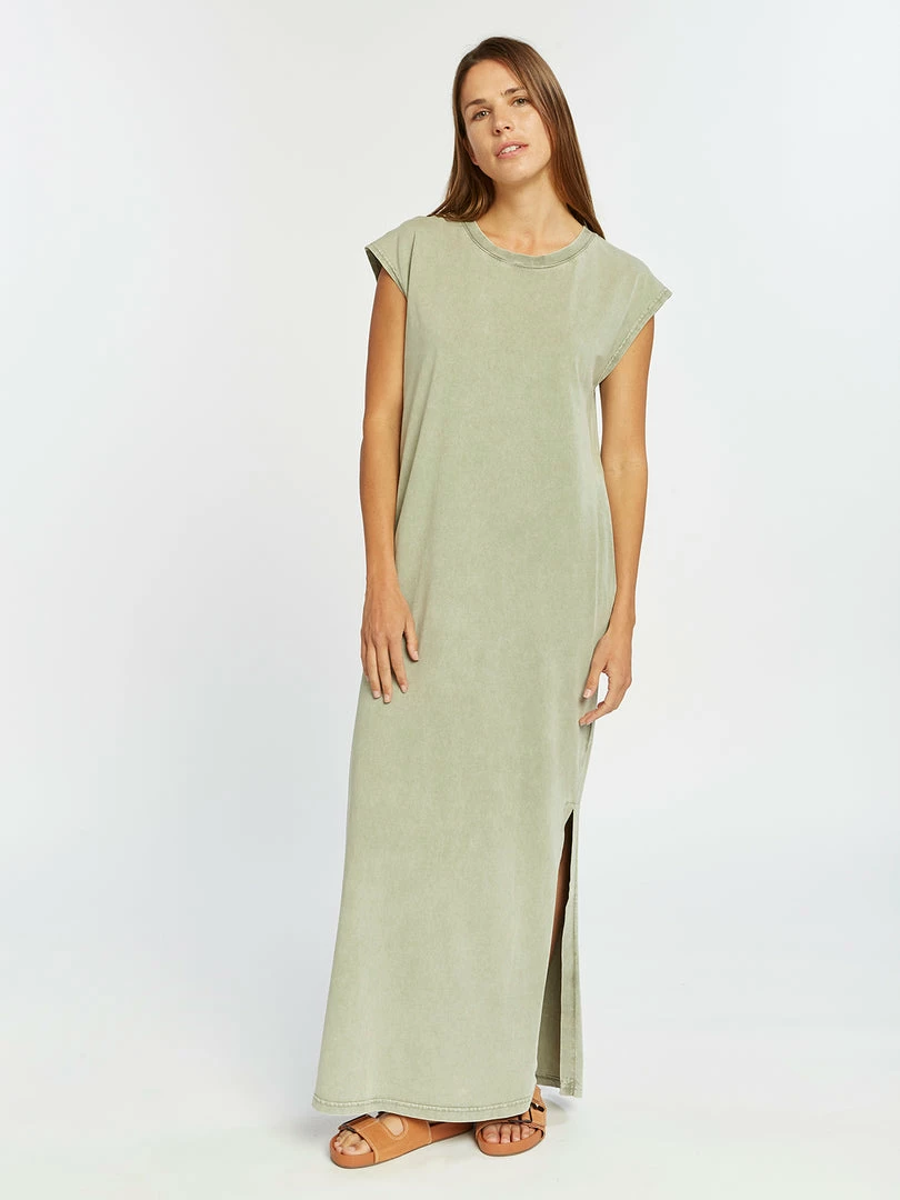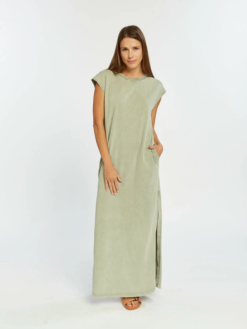 This so casually cool and comfy longline cotton tee dress. Featured in a loose maxi silhouette with side slits and pockets. Wear with sneakers or sandals for any occasion!