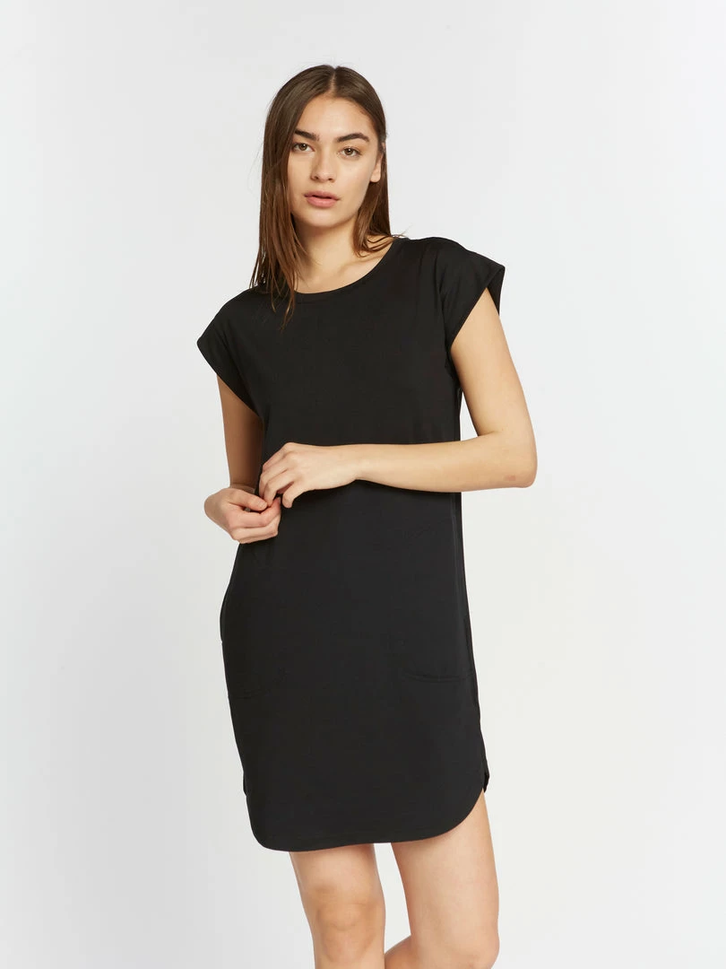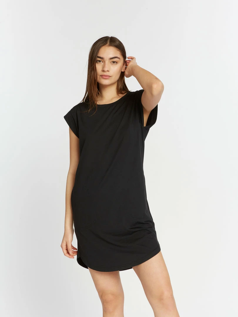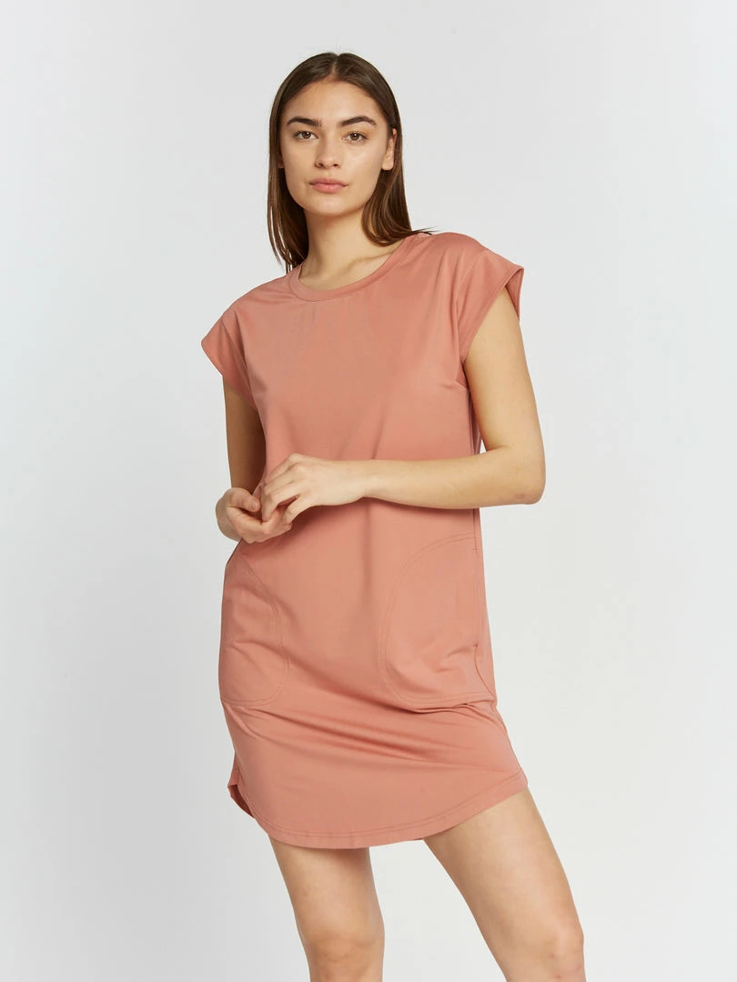 Super comfy to throw on after a light workout or to run to the store! Wear with sneakers for a sporty look. Featuring side pockets, curved hem and mid length silhouette.Â