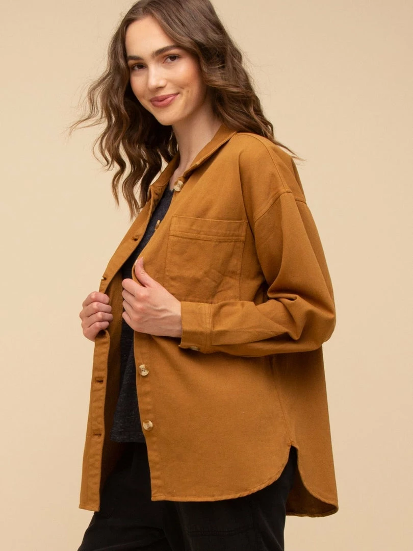 Meet the shacket of your dreams! Perfect for a cool casual look with it’s relaxed and oversized fit. FeaturingĀ button front closure, front pockets and tortoiseshell buttons