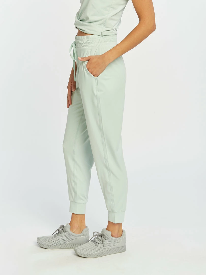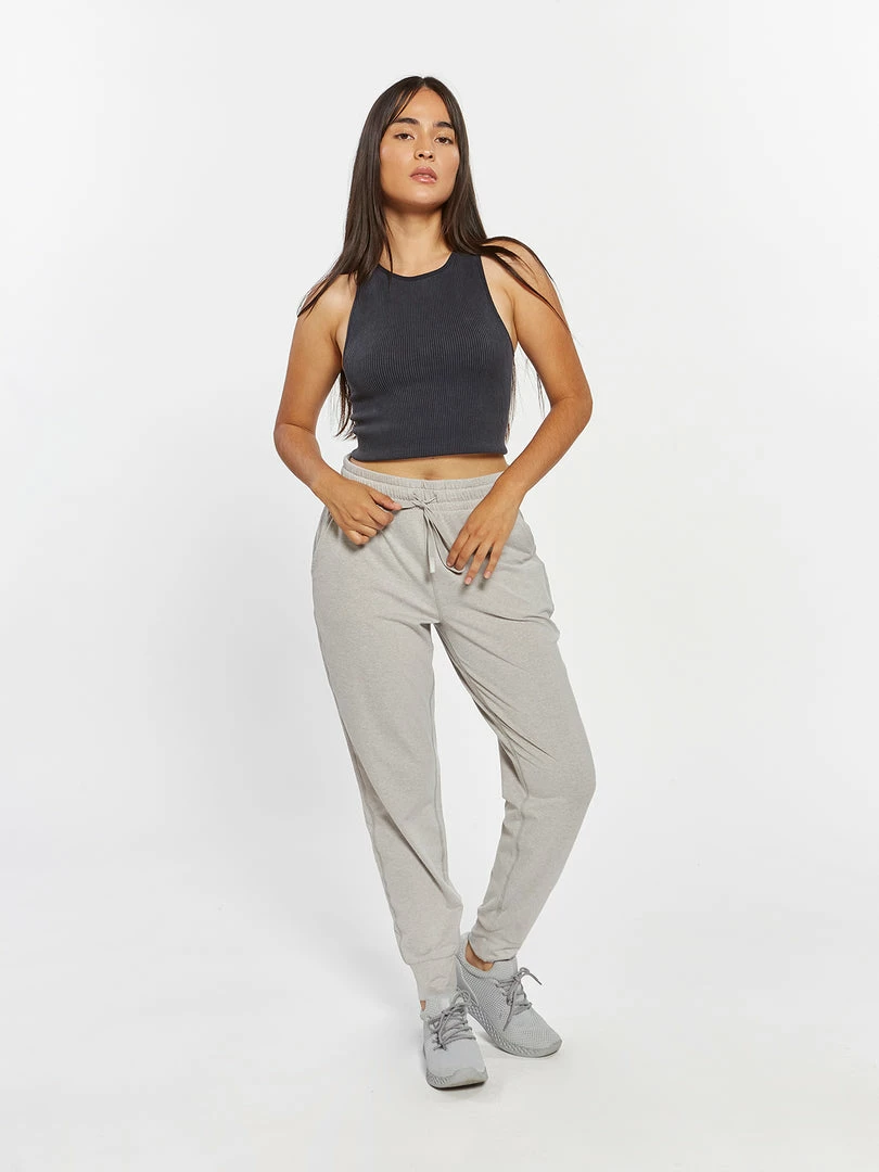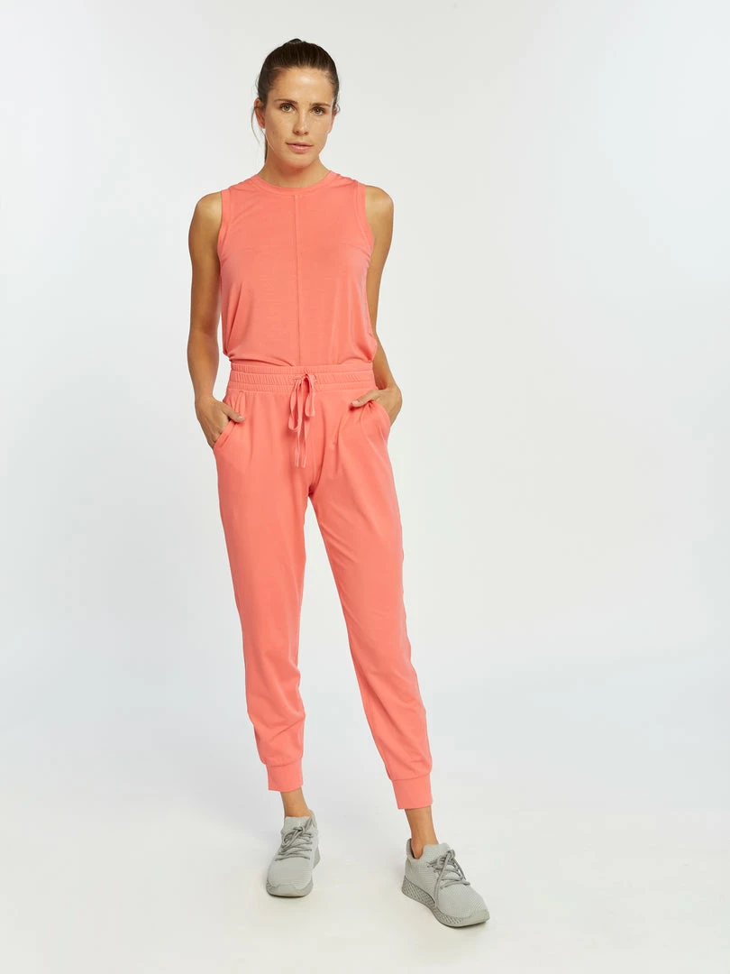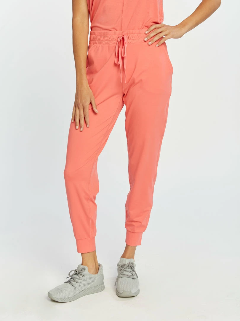 Stay comfy in the Junie Jogger! Whether you are post yoga session or lounging out, these pants are perfect for any activity. Featuring elastic waist band with drawstring tie, 2 front pockets and a pull on fit.