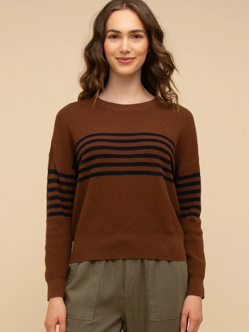 A tride and true classic for any wardrobe. This essential knit is featured in an effortless pullover silhouette with stripe detailing.Â
