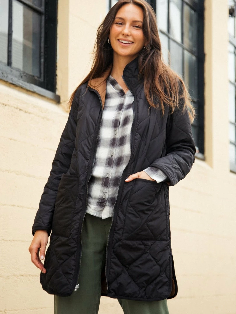 Two coats in one with this long-lined reversible puffer coat. This classic puffer can handle any type of weather and look good with any outfit!
