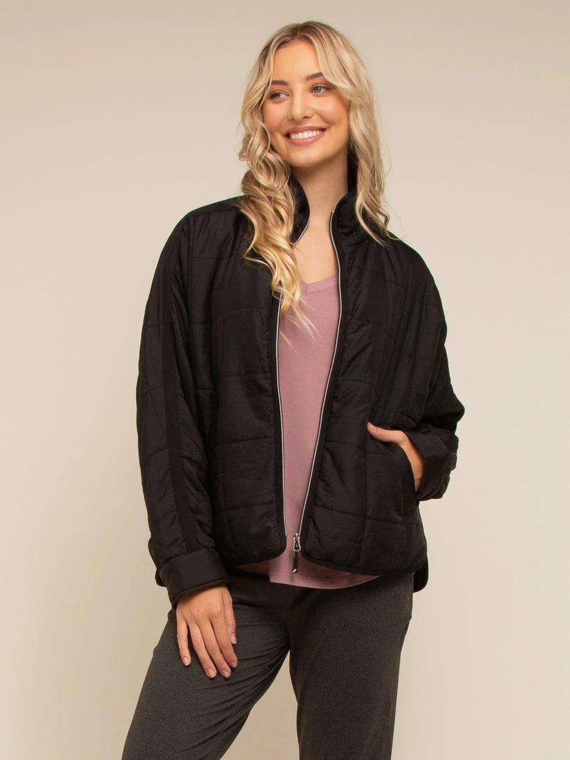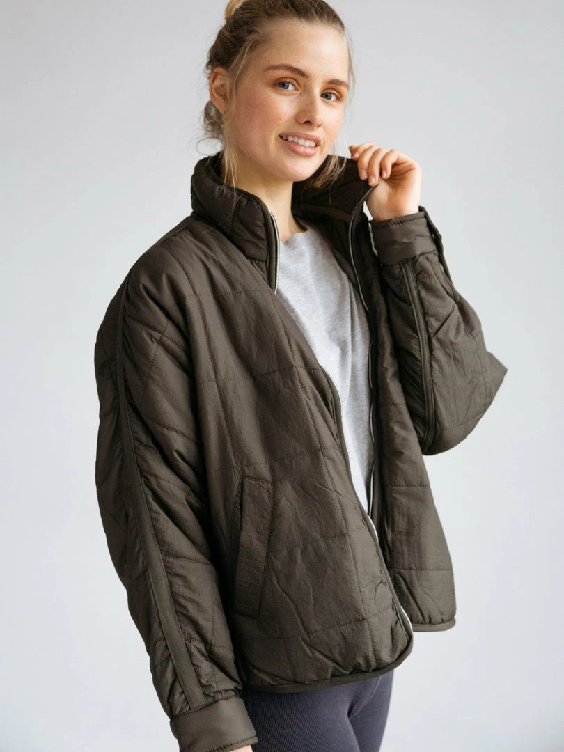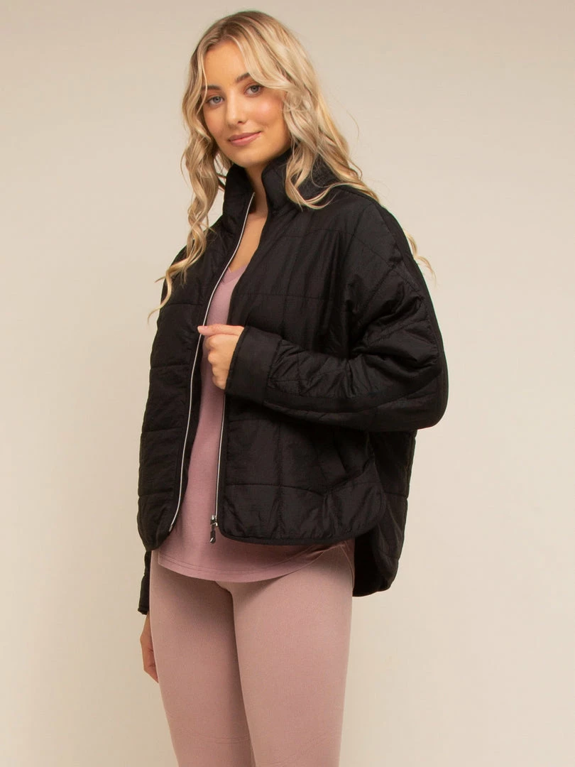 Perfect for on-the-go, take the Ramsey Jacket with you! This oversized silhouette is makes this jacket effortlessly cool. Whether you are off to a light hike or headed out to run errands, this jacket is perfect! Featuring zip front closure and side slits.Â