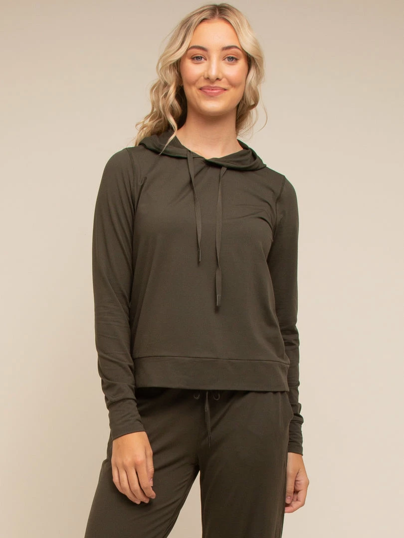 The softest hoodie you will ever wear! Great to layer up for an evening walk or perfect for lounging! Featuring slight side slit and drawstring hoodie. Wear with our Junie Jogger for the perfect match!
