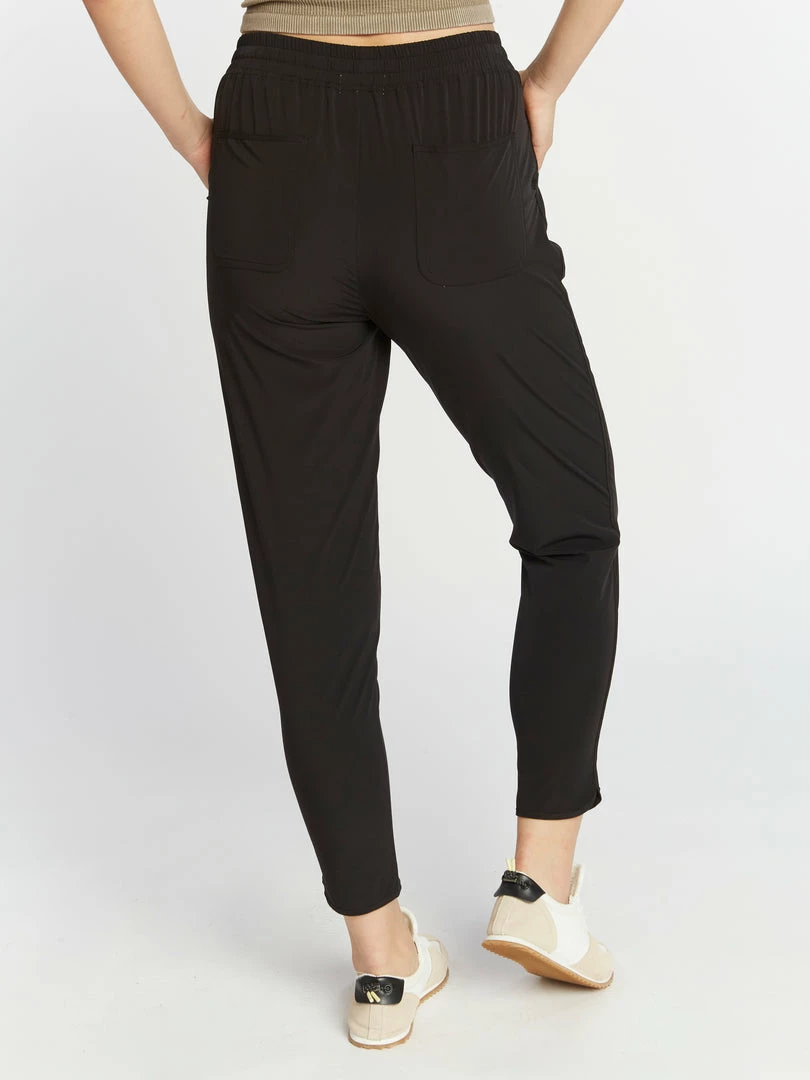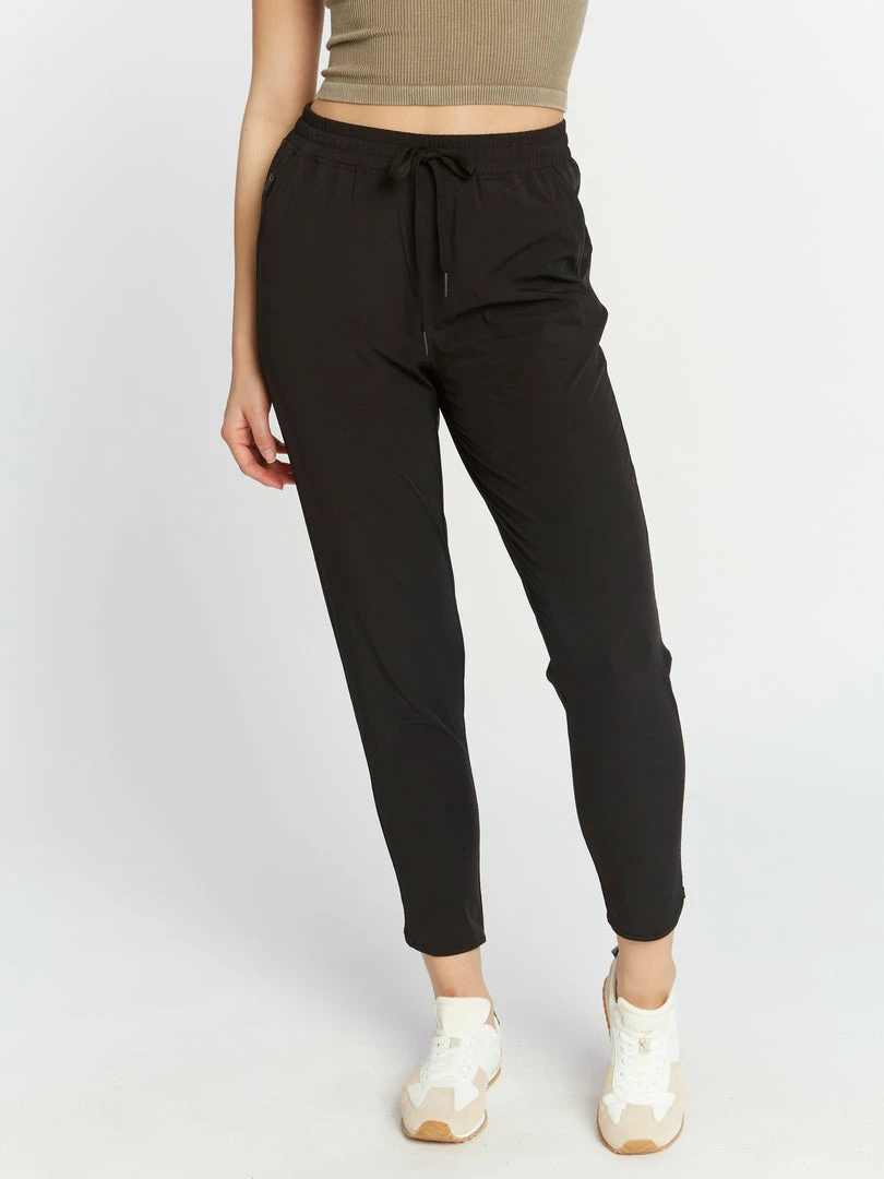 These breezy, elevated joggers will be your next go to post workout. Featuring a pull on elastic waist and side pockets.