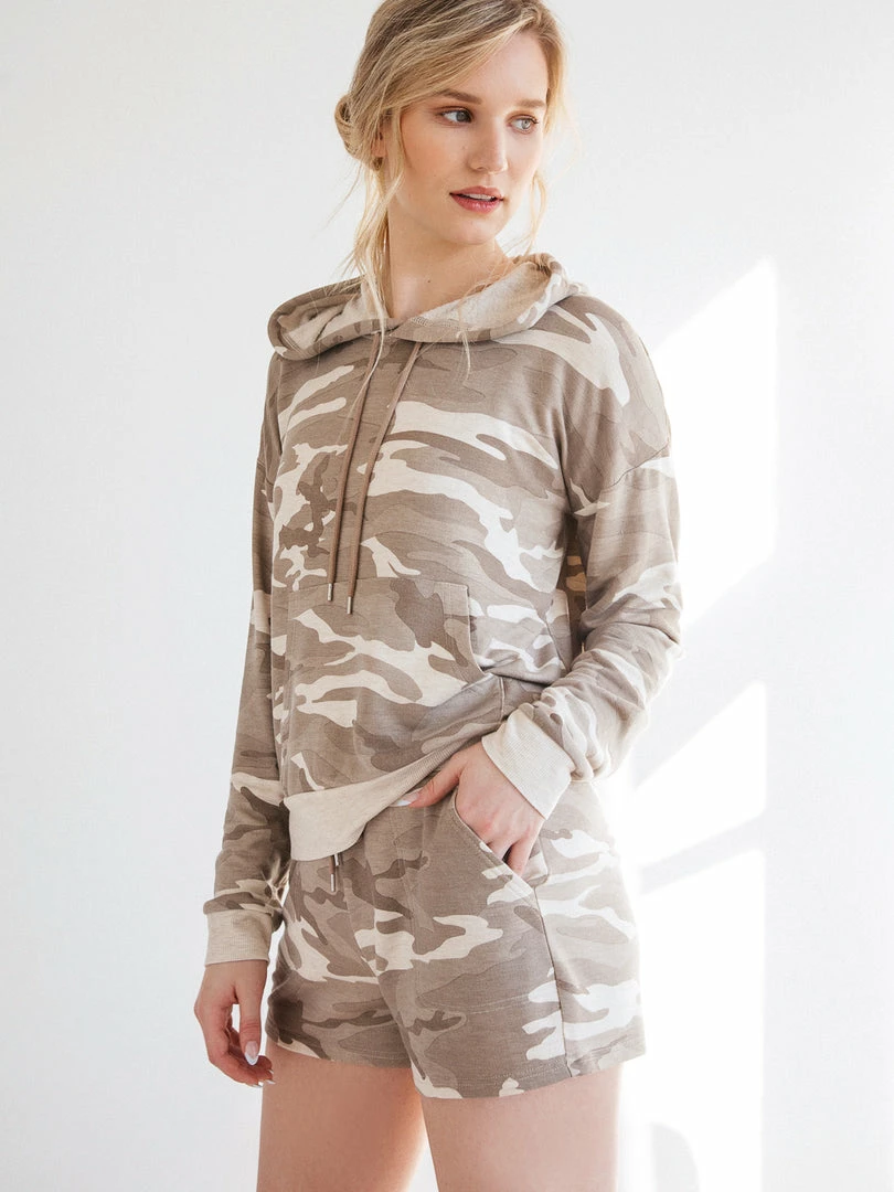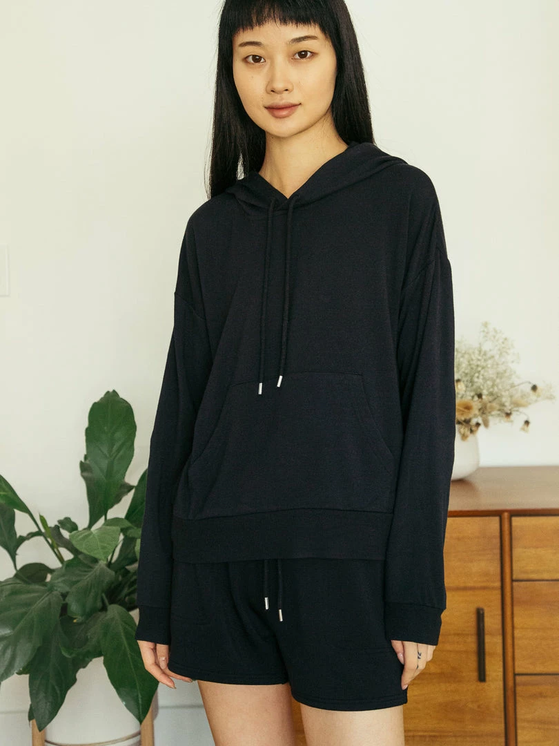 Our super soft fabrics in a new set, perfect for lazy days. The Willams hoodie is so comfy you will never want to take it off! Featuring hoodie with drawstring details, front pocket and ribbed cinched sleeves. Wear with the Ellison Shorts for the perfect match.Â