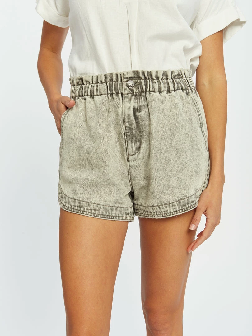 Slip on the Hang Loose Shorts for a comfortable and relaxed fit. Sporty and cute, these shorts go with any top. Featuring an elastic waistband with button zip closure, side pockets and dolphin short detailing.Â