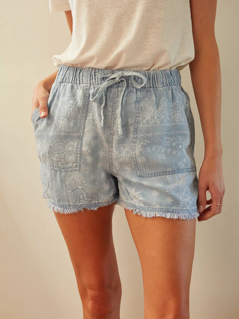 The cut: Easy pull-on shorts with dual side pockets. The fabric:Â super soft sustainable Tencel Lyocell (and, yes, there’s a matching shirt for a low-key set moment)