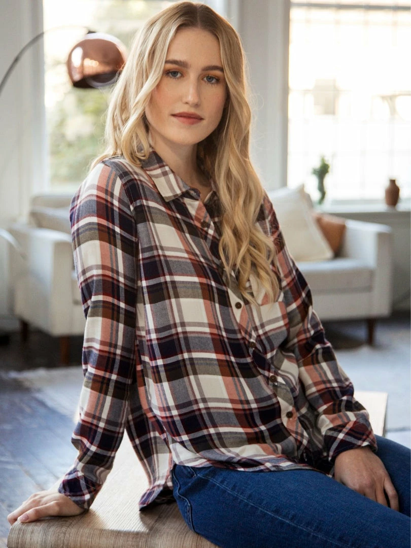 Effortlessly cool and easy to throw on with any look! This perfect plaid can be worn open as a layer or buttoned up.