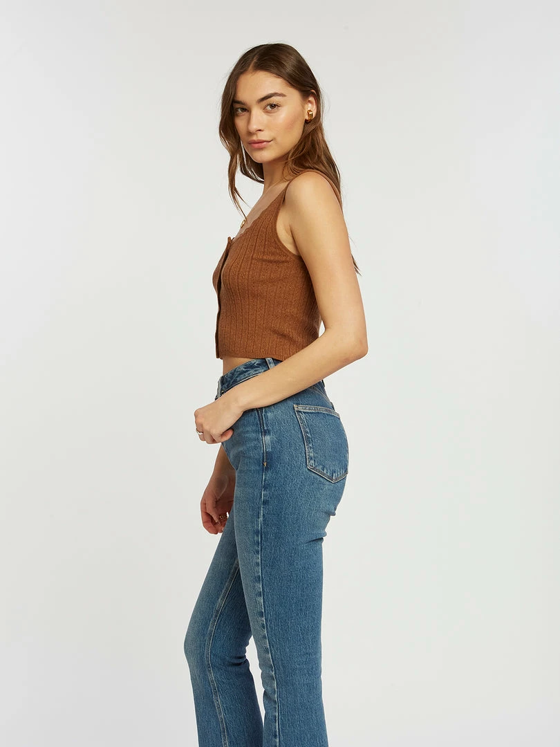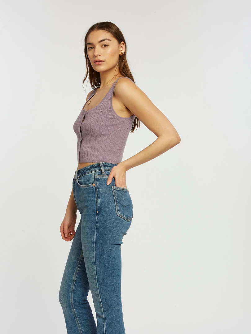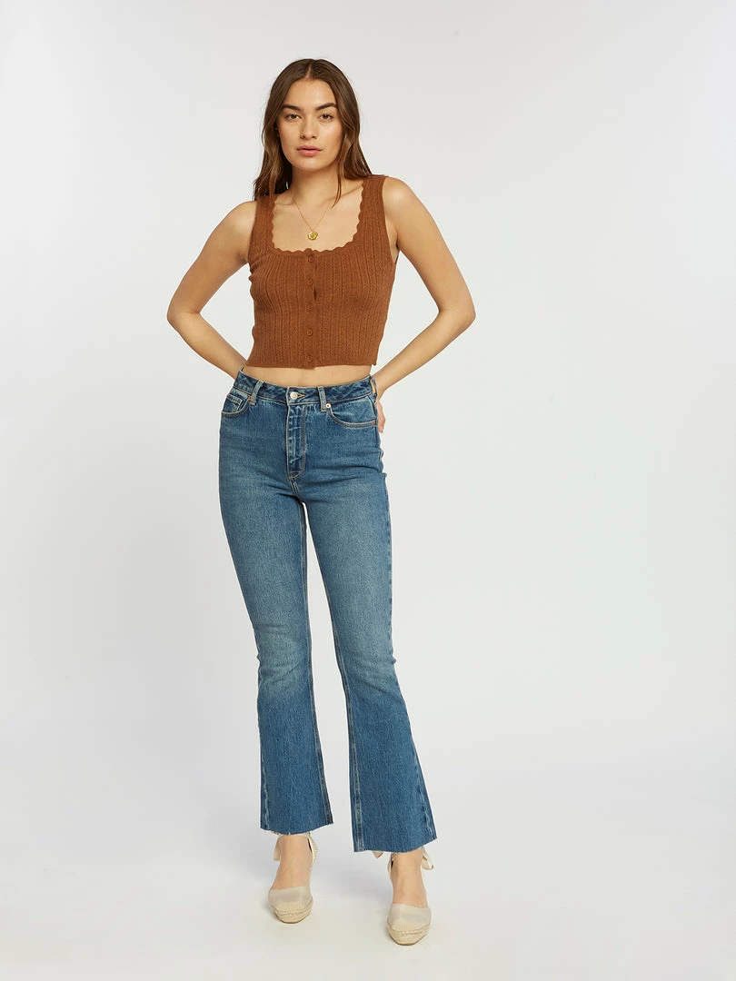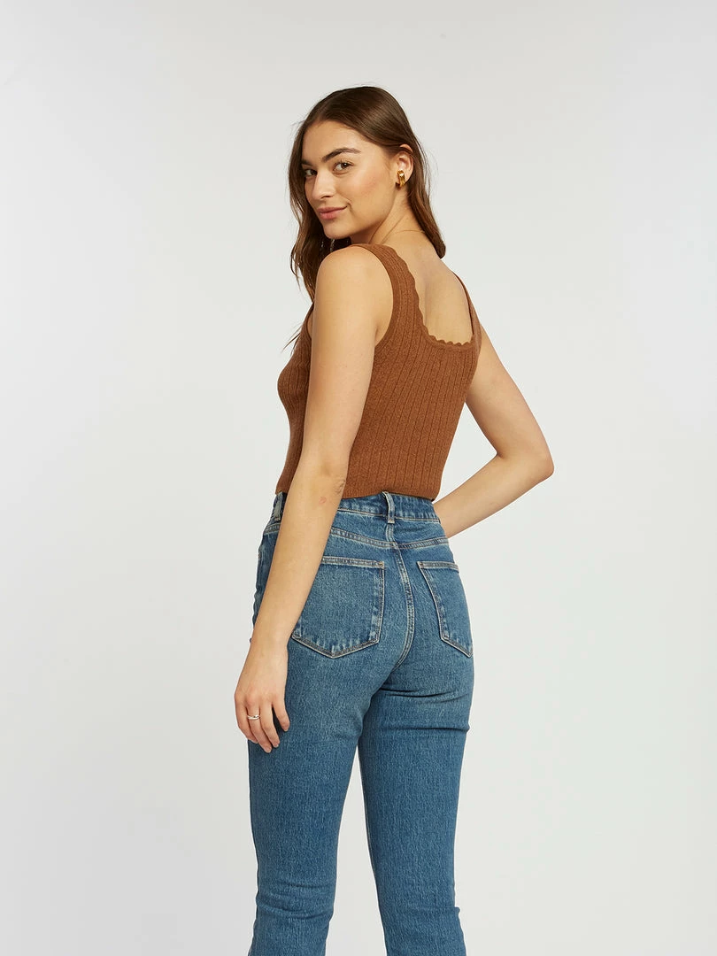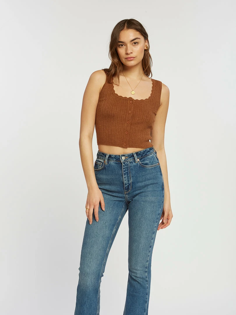 The cutest update to a tank top we’ve ever seen! This form fitted tank is complete with scallop details around the neckline and a button down front.Â